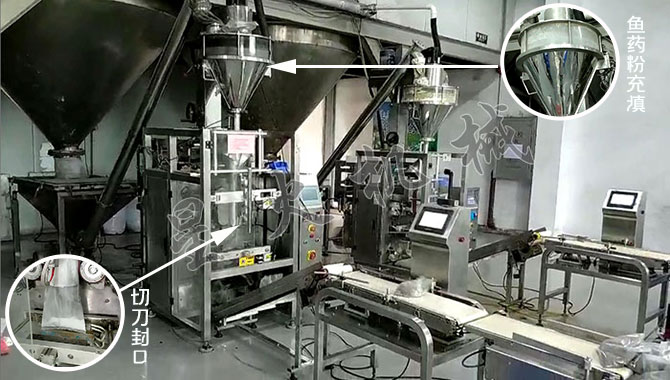 魚藥粉包裝機生產現場-設備細節展示: