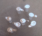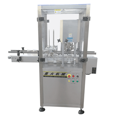 抗原檢測試劑瓶放置于等理瓶器中,通過理瓶器理入等分盤中,等分盤作二十四等分的間歇運動,先在灌裝工位上由陶瓷泵灌裝,每瓶分一次灌裝;完成液體灌裝的瓶子運動至戴蓋工位時,自動戴上蓋子,再運動至旋蓋工位時,旋蓋頭下降,將蓋子旋緊在瓶子上。 |