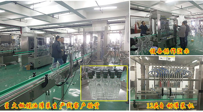 星火公司提供設備來廠觀察,參觀,只有實地看過的設備才放心。現在有客戶--西安世外桃源橄欖油有限公司來我公司機械能了現場驗貨調試,西安世外桃源橄欖油是一家專業生產橄欖油的企業,目前為了擴大規模,特在我公司購買橄欖油灌裝生產線一條,經過客戶來星火車間現場驗貨后,目前已經經過安裝投入使用了,這條灌裝生產線包括12頭自動橄欖油灌裝機、直線自動壓蓋機和雙側貼標機,具有生產效率高,全自動化操作等優點,12頭同步灌裝很是滿足了深受西安世外桃源橄欖油有限公司在生產量的需求,該灌裝生產線獲得了客戶的肯定和喜愛!