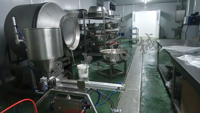 福成肥牛餐飲管理有限公司車間-火鍋湯料灌裝機-肥牛火鍋蘸料半自動灌裝機-生產應用現場