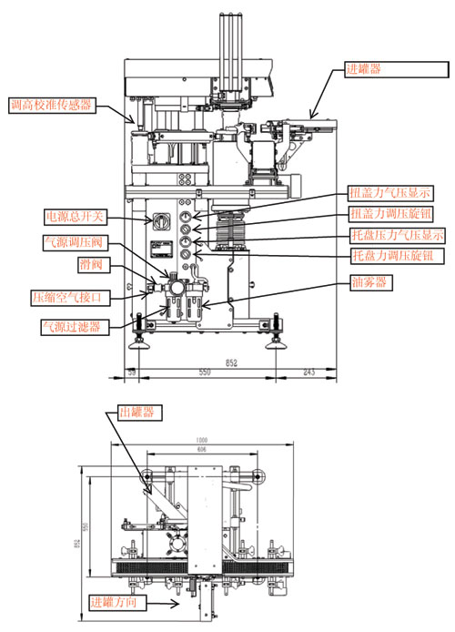 這是一款以電氣程序控制和氣動(dòng)驅(qū)動(dòng)實(shí)現(xiàn)運(yùn)轉(zhuǎn)為主的設(shè)備。和傳統(tǒng)機(jī)械傳動(dòng)設(shè)備不同的是,采用氣缸作為主要的動(dòng)力原件,各動(dòng)作原件通過編程控制器協(xié)調(diào)動(dòng)作,應(yīng)用數(shù)目較多的傳感器檢測(cè)瓶子、蓋子和設(shè)備上的動(dòng)作部件。采用氣動(dòng)和電氣編程控制取代機(jī)械傳動(dòng)裝置帶來的好處是:設(shè)備可以很干凈,避免潤(rùn)滑油脂對(duì)生產(chǎn)環(huán)境和產(chǎn)品的影響,很重要的是,可以對(duì)產(chǎn)品必須達(dá)到的指標(biāo)參數(shù)進(jìn)行監(jiān)控和靈活調(diào)整,如真空度、擰蓋力矩等。基于該設(shè)備的特點(diǎn),設(shè)備的管理人員只要掌握機(jī)器的工作程序流程、每個(gè)傳感器信號(hào)在機(jī)器程序中的作用,就可以輕松實(shí)現(xiàn)對(duì)設(shè)備的維護(hù)調(diào)整和故障排除。