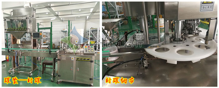 自動化雜糧顆粒罐裝包裝生產線由全自動理瓶機、顆粒自動稱重灌裝機、自動封罐機、直線式旋蓋機、自動貼標機、收瓶機組成。適用于雜糧、堅果、調料等顆粒物料的罐裝自動包裝。其中顆粒自動稱重灌裝機配自動上料機,產品包裝過程采用PLC控制,可完全實現生產全過程的自動化,雜糧罐裝生產線設計先進、合理、安全,并融入人性化,使操作、規格切換、維修十分方便,安全可靠。