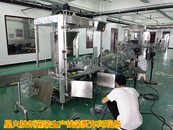 粉劑灌裝生產線是星火公司針對瓶/罐裝的粉末物料充填灌裝而研制,如:豆奶粉、蛋白粉、豆漿粉、米粉、咖啡粉、蘇打粉、藕粉、核桃粉、膨松劑、泡打粉、酶制劑等。瓶裝粉劑灌裝生產線由理瓶機、粉劑灌裝機、理蓋旋蓋機、鋁箔封口機等設備組成,能完成粉劑物料的喂罐、托罐、充填計量、上蓋旋蓋、鋁箔封口等工作。
