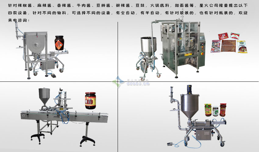 我們都知道,隨著近幾年火鍋行業的快速發展,對灌裝封口機的需求量也在不斷的擴大,在2015年初,我公司對生產廠房進行了升級和改造,在不斷引入新技術的同時,也加大了生產規模,星火公司的宗旨一直是服務體現價值,產品質量更加穩固,價格更加低,使客戶得到很大的實惠。星火公司在封口機領域已經發展十多年,積累了豐富的經驗,而這些經驗正是我們改進和進步的地方!新技術的投入,使得生產效率得到了很大的提高,目前我公司的研發團隊在不斷的擴大,選擇星火,是您不錯的選擇!詳情請致電:18205183225(劉經理)!針對不同的物料,可選擇不同的設備,為火鍋和醬料行業提供一下機型!